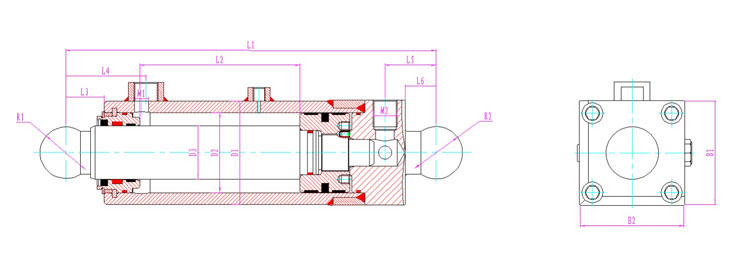 | 產品型號 | 行程 | 安裝距 | 額定壓力 | L1 | L2 | L3 | L4 | L5 | L6 | D1 | D2 | D3 | R1 | R2 | B1 | B2 | M1 | M2 |